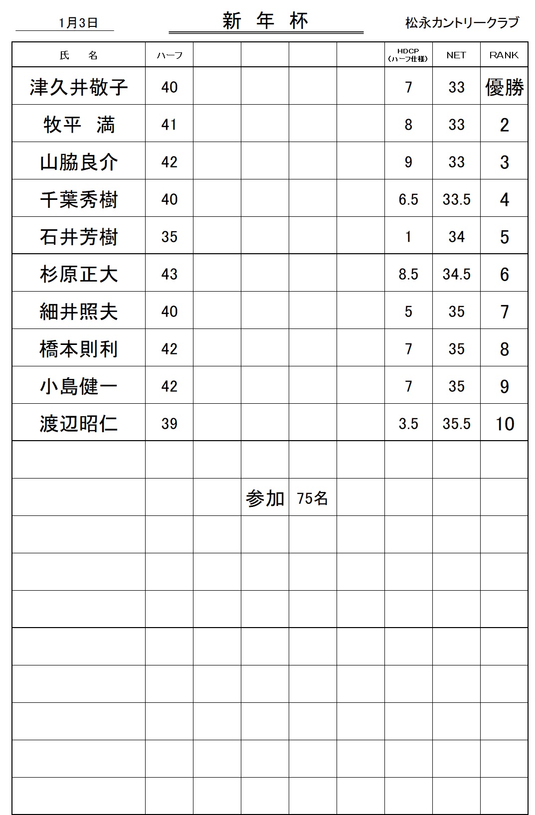 新年杯成績表