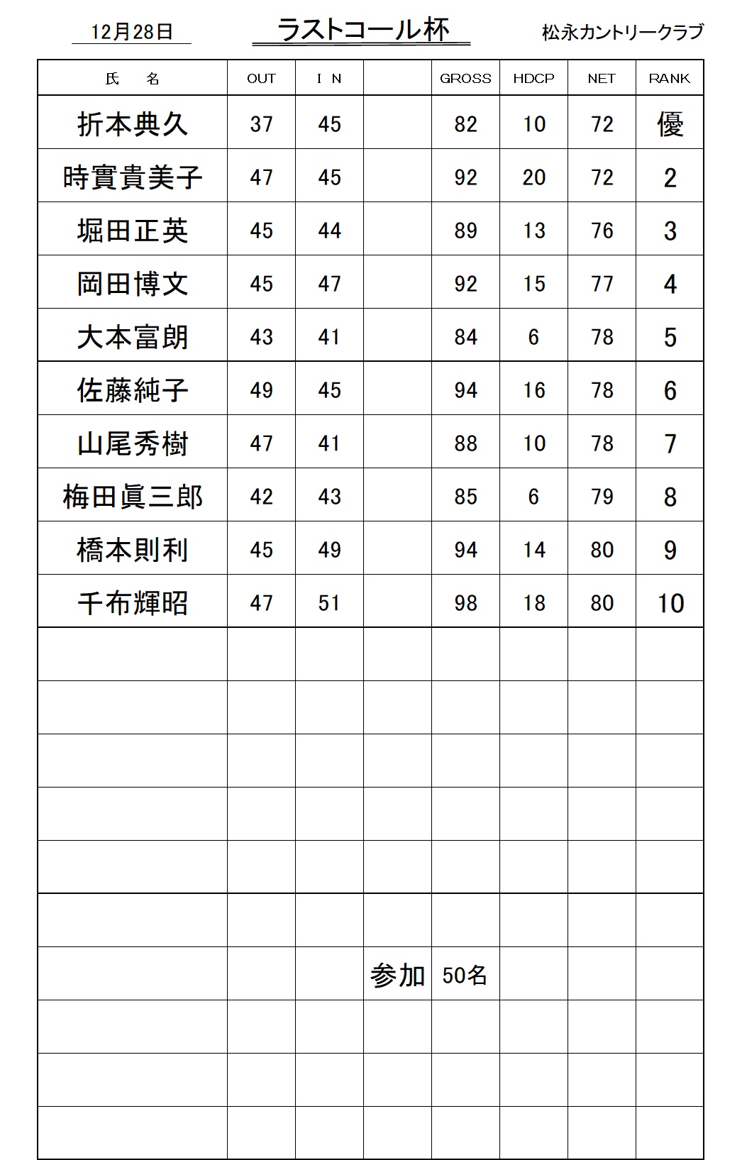2025年12月28日ラストコール杯成績表