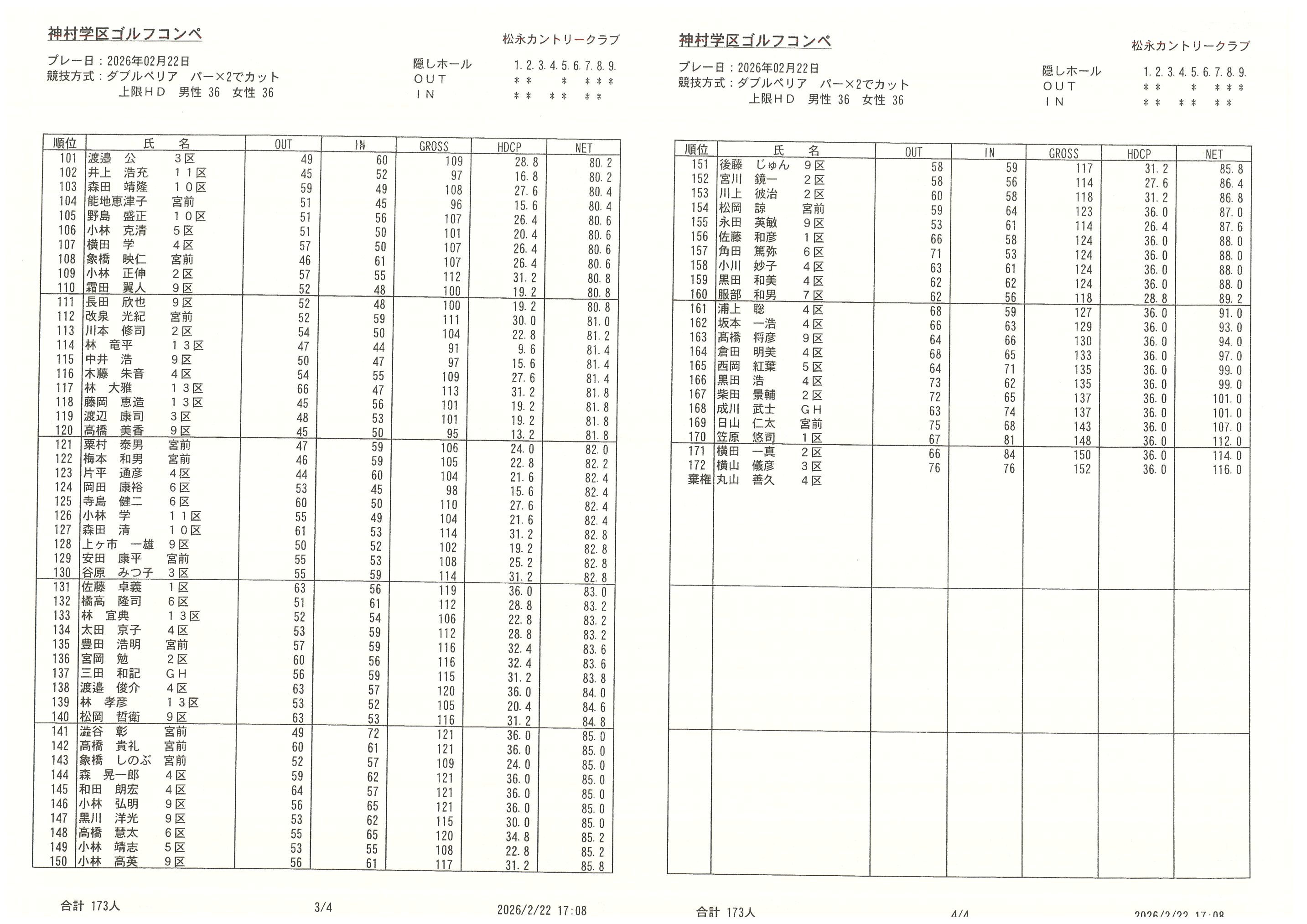 神村学区ゴルフコンペ