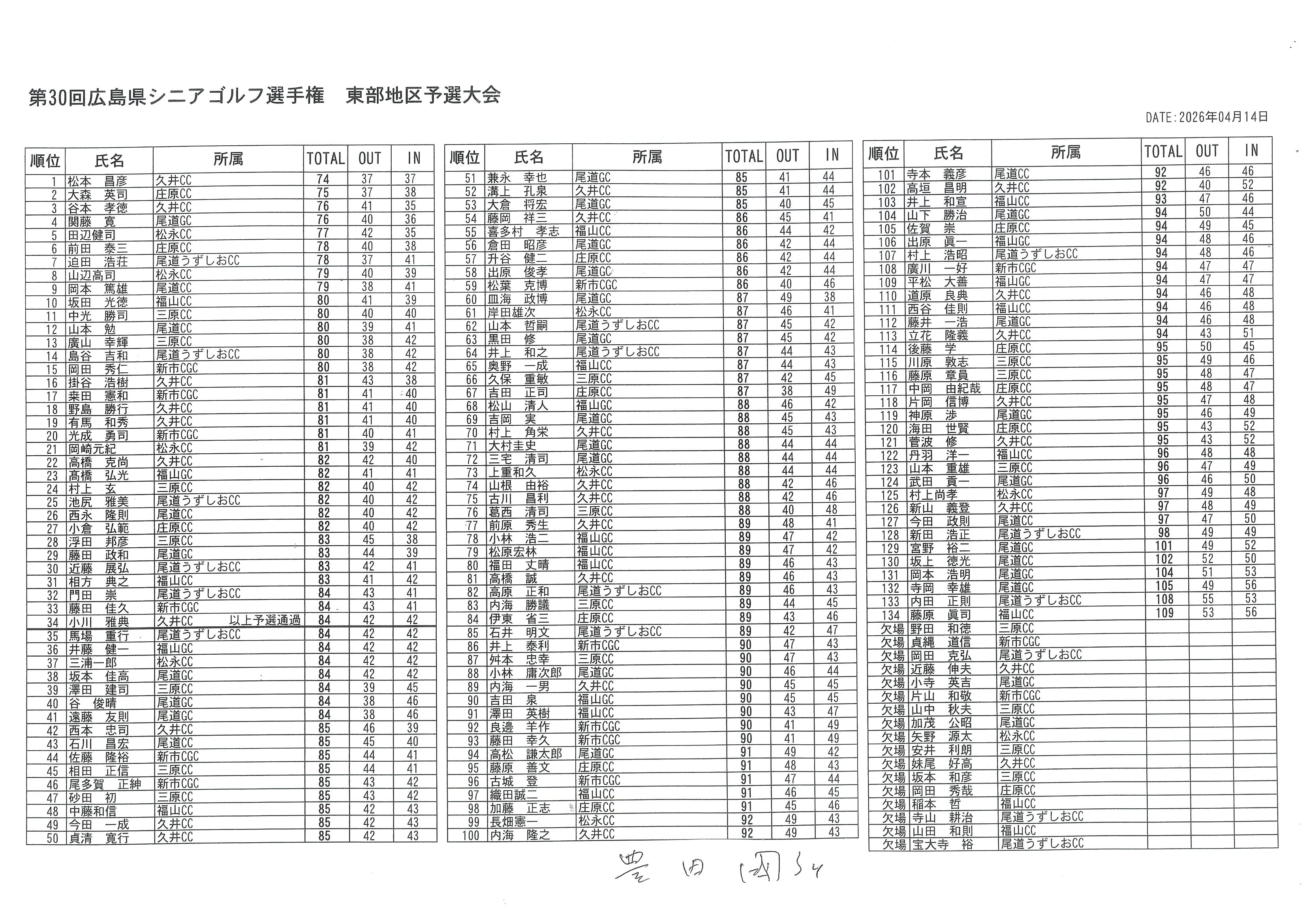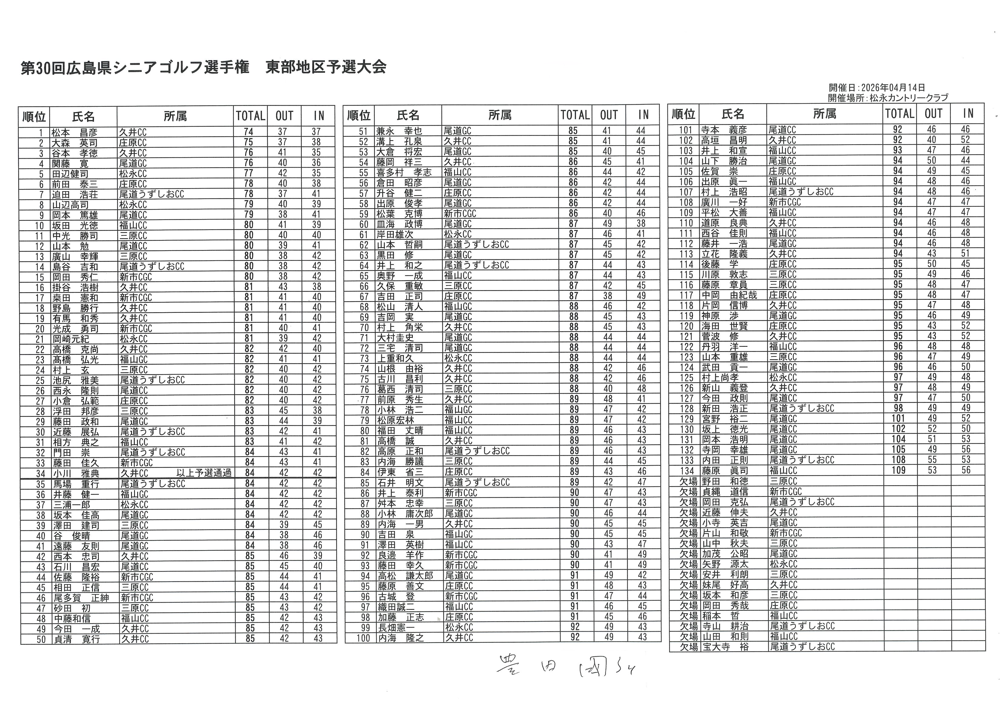 第30回広島県シニアゴルフ選手権東部地区予選大会