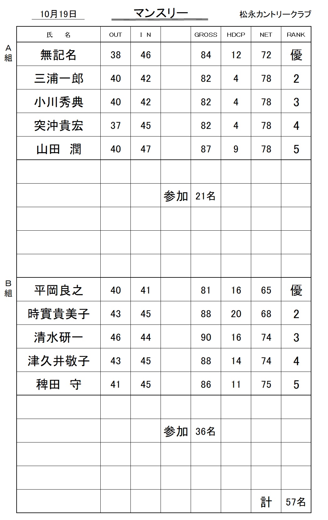2025年10月19日マンスリー成績表